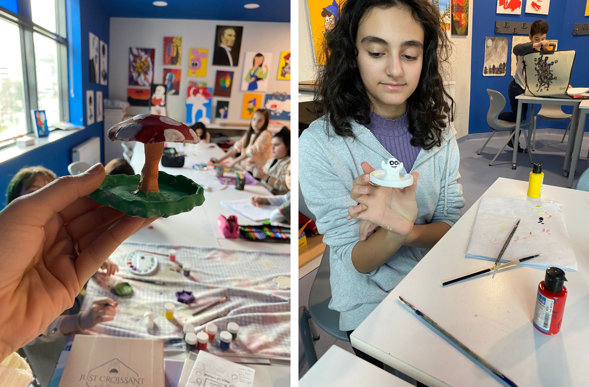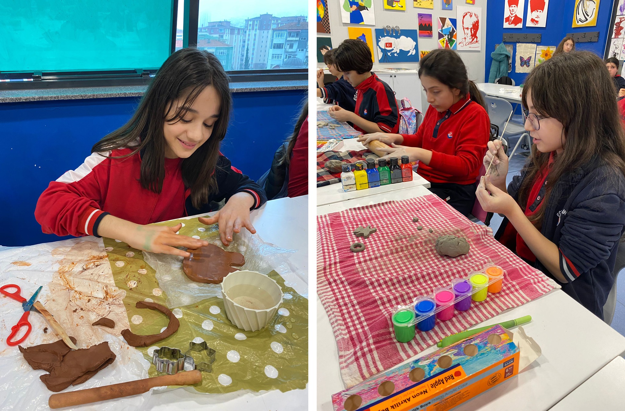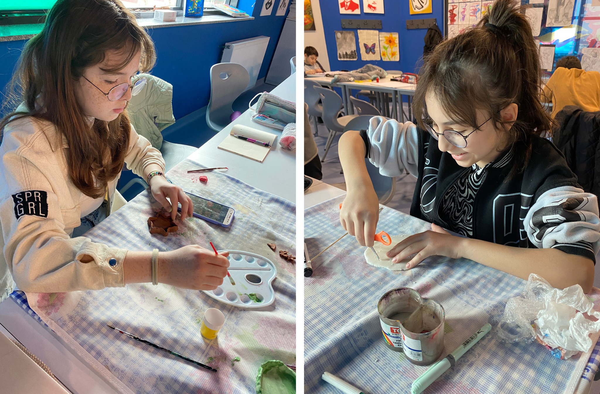 5 ve 6. sınıf öğrencilerimizle Görsel Sanatlar Kulübünde el becerimizi arttırmak için yaptığımız seramik nasıl yapılır nasıl boyanırı eğlenerek öğreniyoruz...