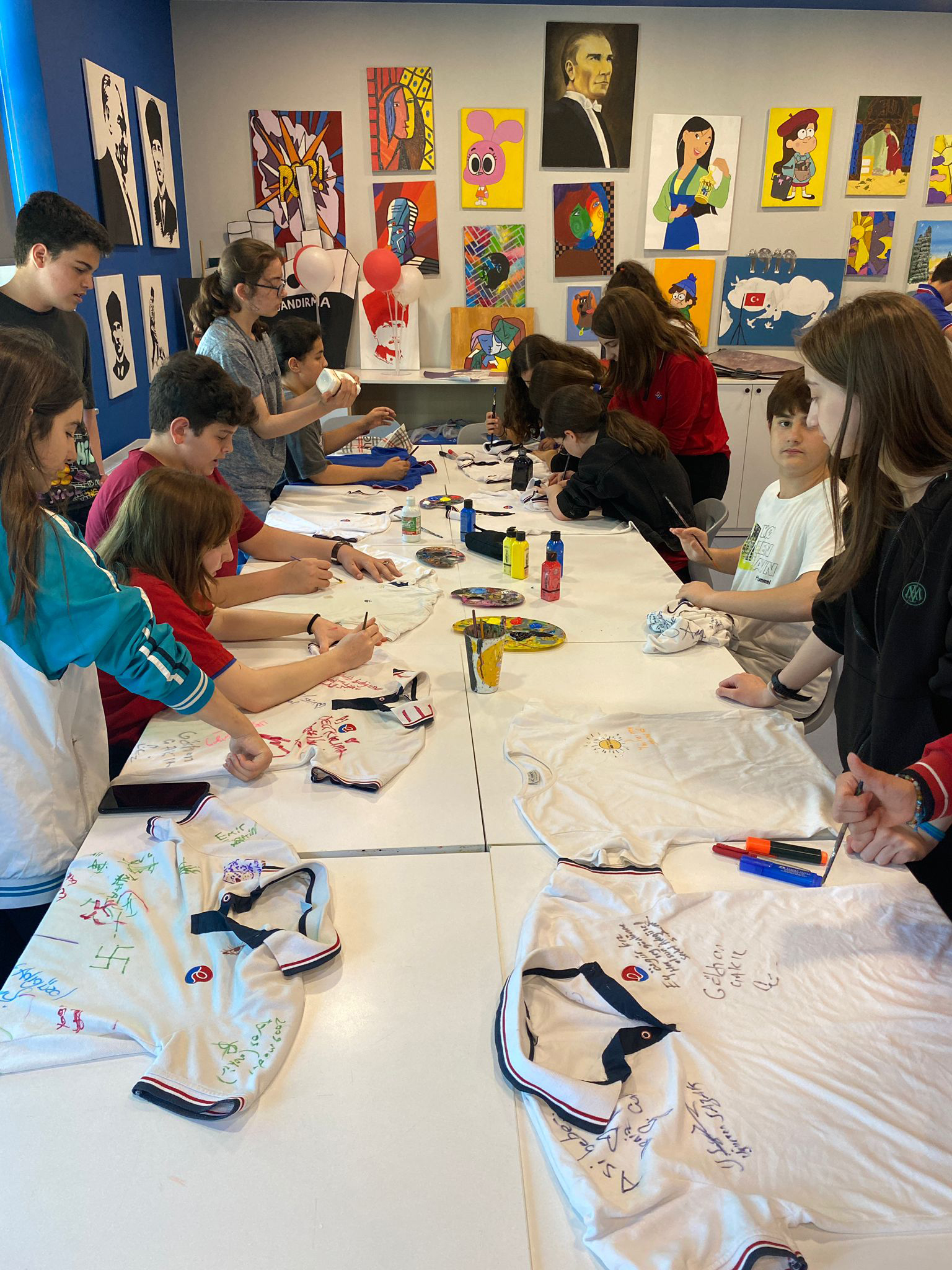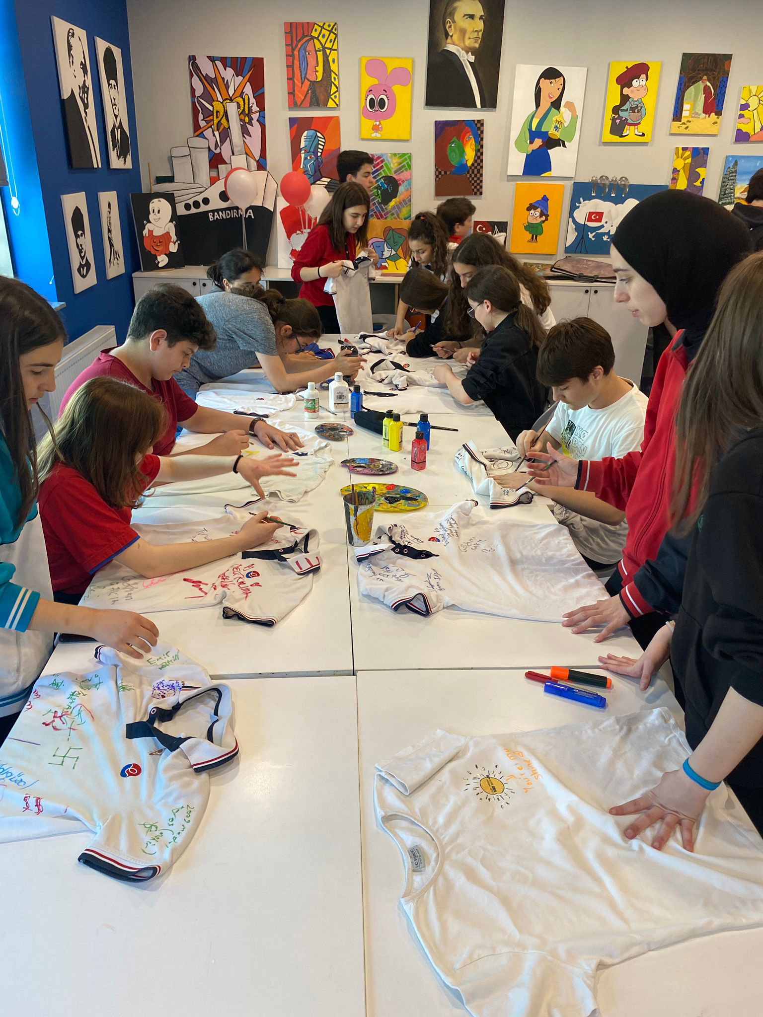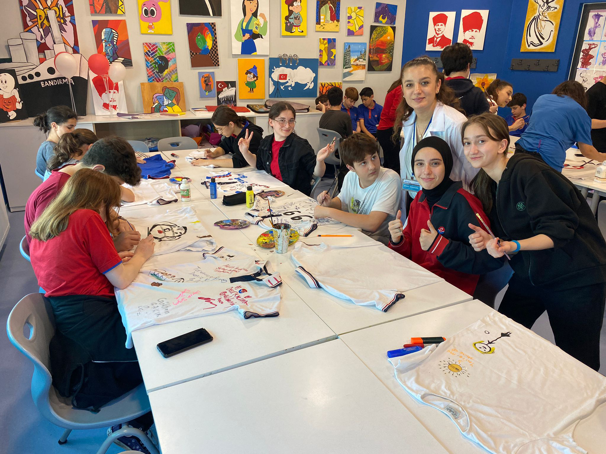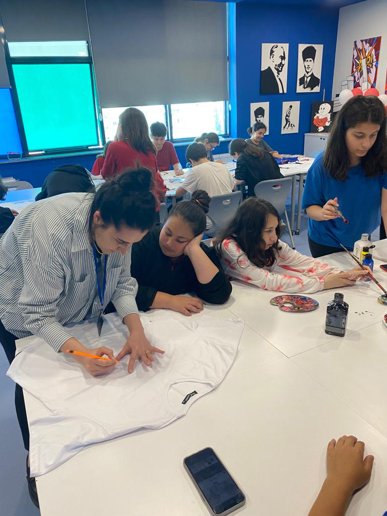 Atakum Samsun Eğitim Bilimleri okulumuzun 8. sınıf öğrencileri, stresten arınmak ve yaratıcılıklarını ortaya çıkarmak için bir tişört boyama etkinliğinde buluştu. Renklerle stresi yok eden öğrencilerimiz, kendi tasarımlarını tişörtlere aktararak eğlenceli bir deneyim yaşadılar. Bu etkinlik sayesinde öğrencilerimiz, sanatın terapötik gücünü deneyimleyerek stresi ve gerginliği geride bıraktılar. Kendi yaratıcılıklarını sergileme fırsatı bulan öğrencilerimiz, birlikte keyifli anlar paylaşarak birbirlerini motive ettiler. Atakum Samsun Eğitim Bilimleri okulu olarak, öğrencilerimizin stresle başa çıkma becerilerini geliştirmek ve kendilerini ifade etme imkanı sunmak amacıyla bu tür etkinliklere önem veriyoruz.