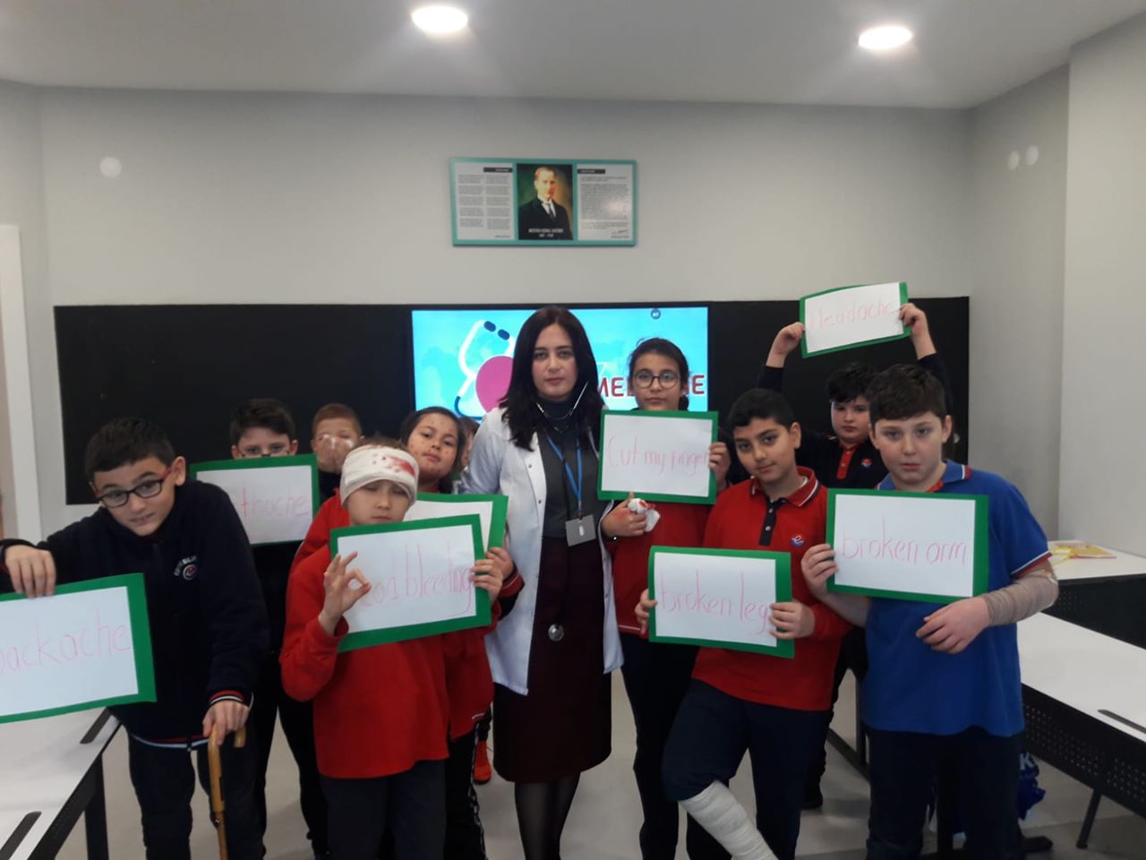 İngilizce dersinde sağlık konusunun kelimelerini uygulamalı olarak öğrendik..